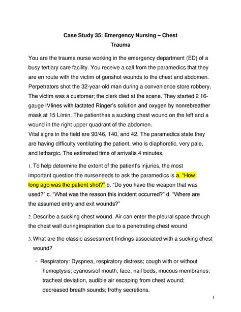 Emergency Case Study Scenarios For Nurses